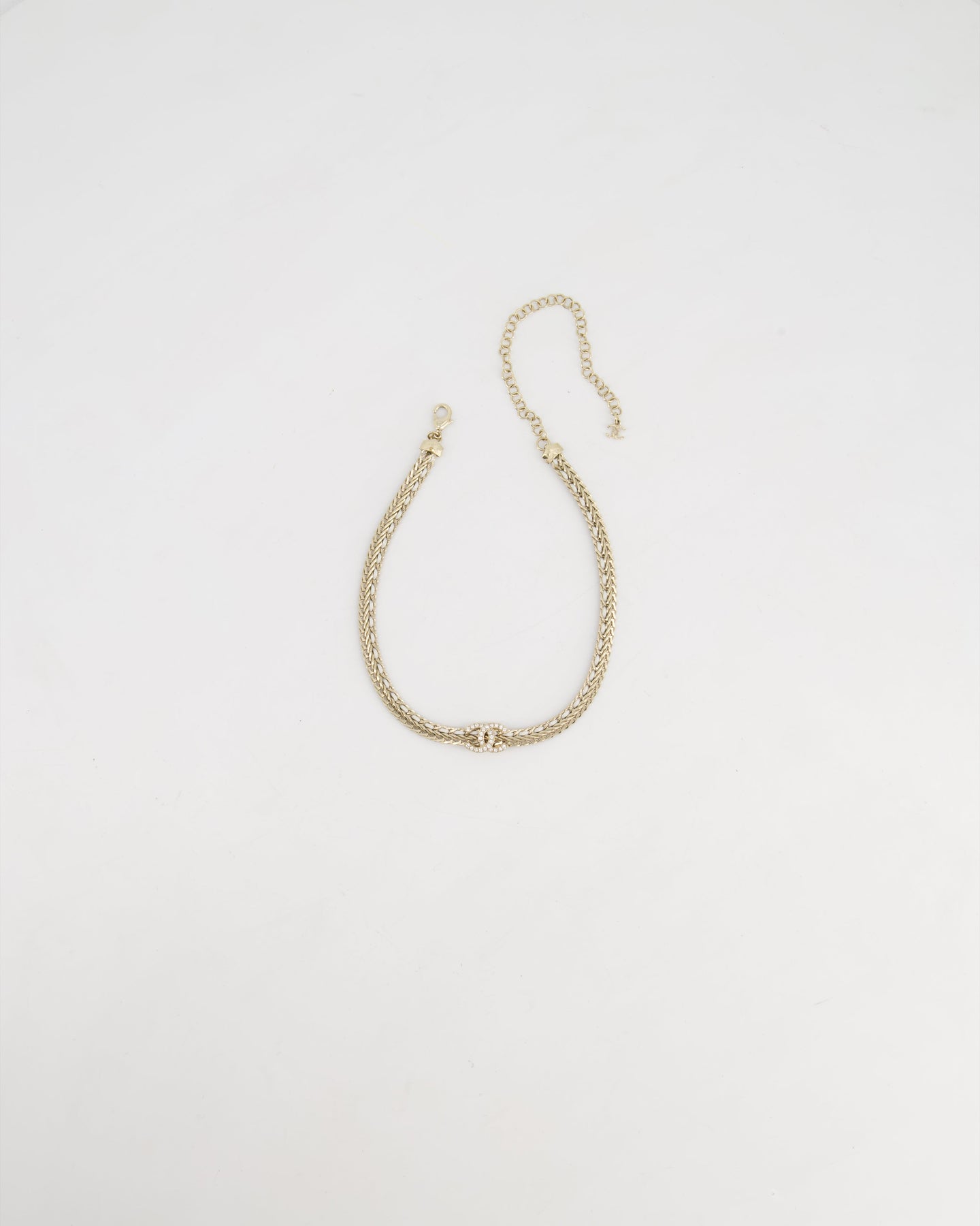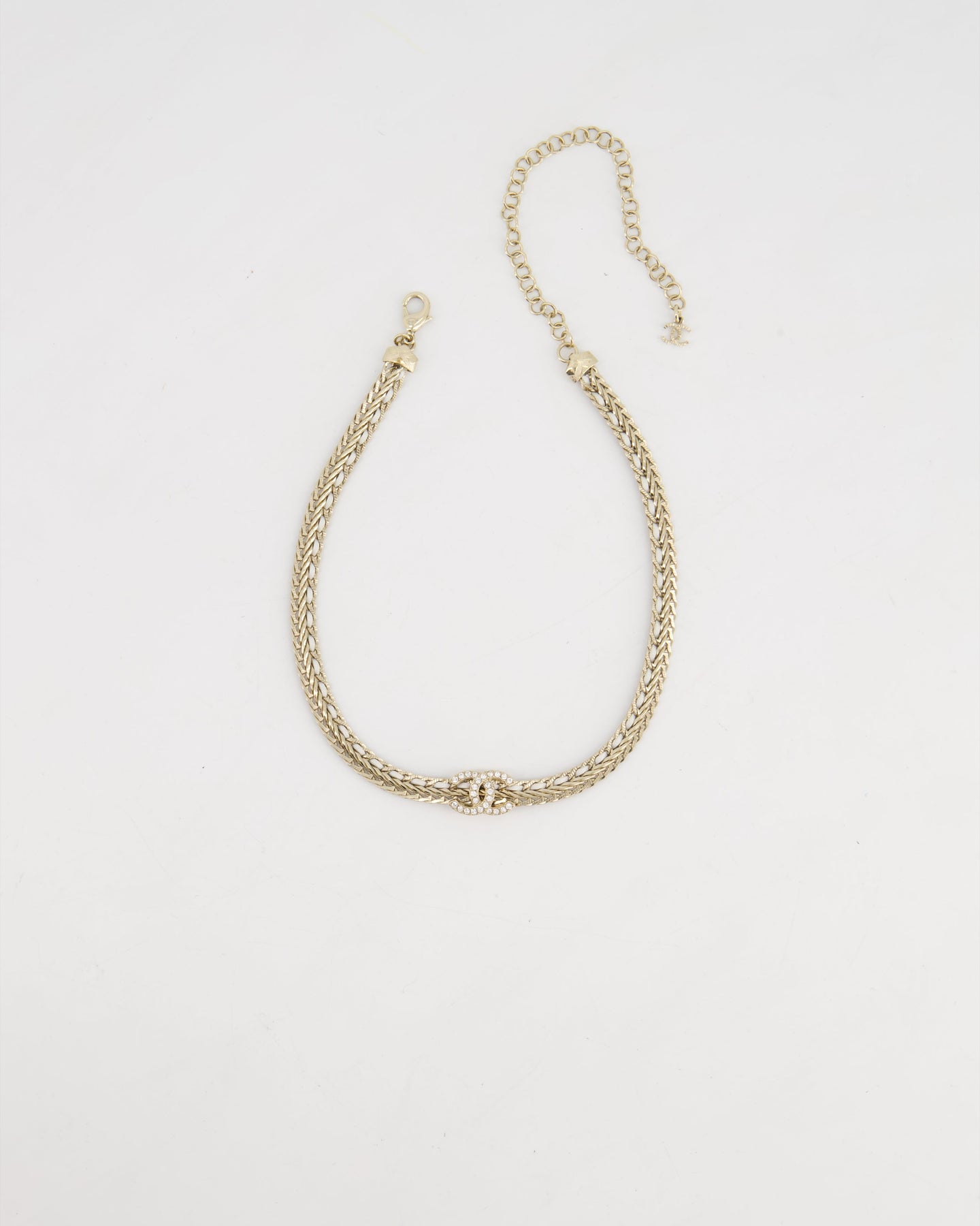 *HOT* Chanel Chain Choker Necklace in Champagne Gold with Crystal CC Logo