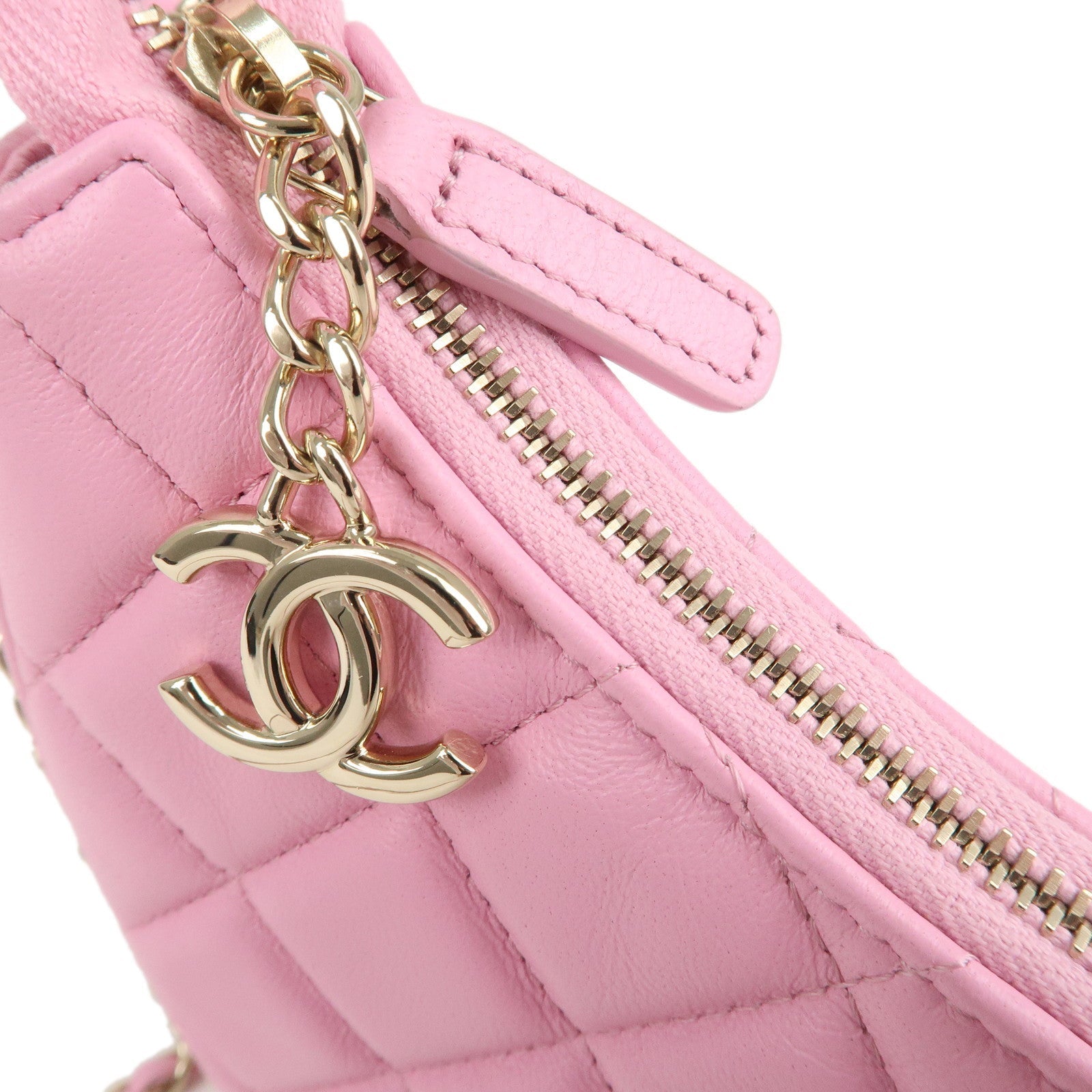 Auth Top Quality Chanel Matelasse Lamb Skin Small Hobo Shoulder Bag Pink AS3917 Used F/S