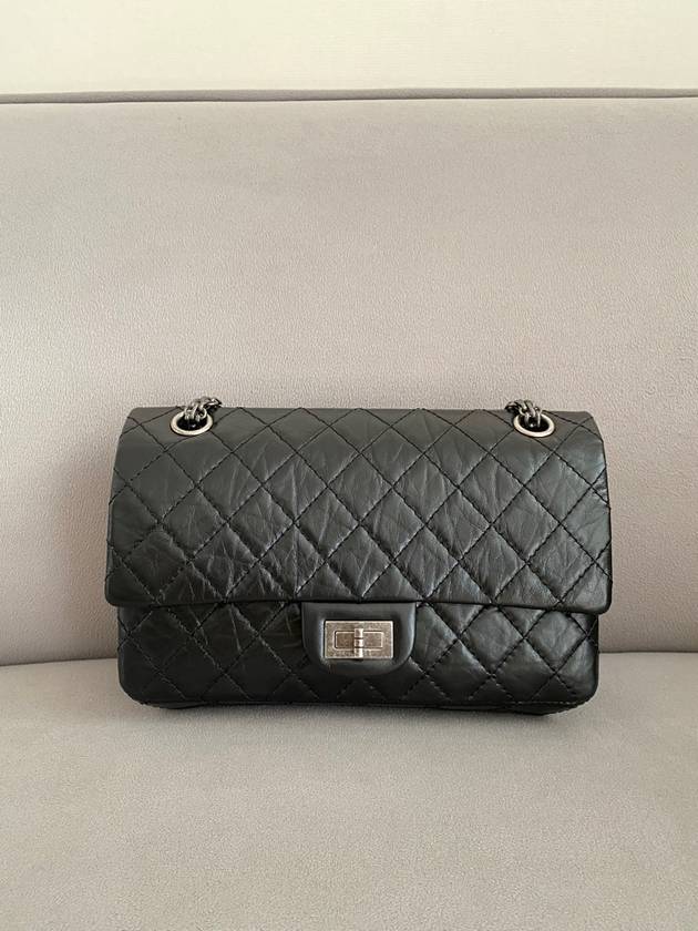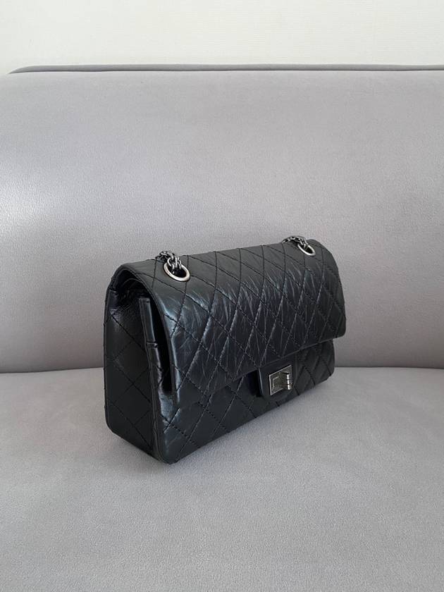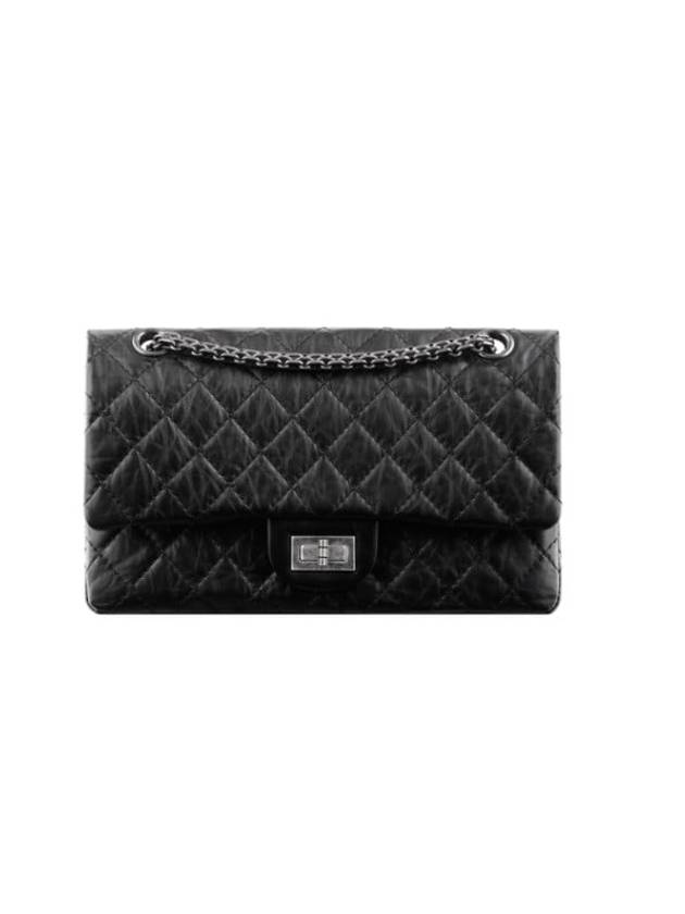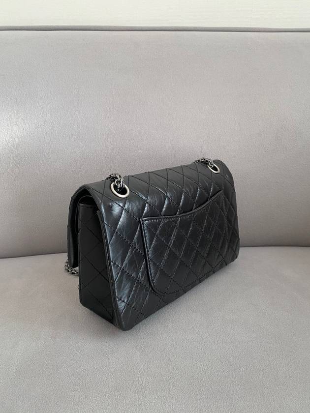 Product Name: 255 Chain Vintage Calfskin Ruthenium Medium Flap Shoulder Bag Black