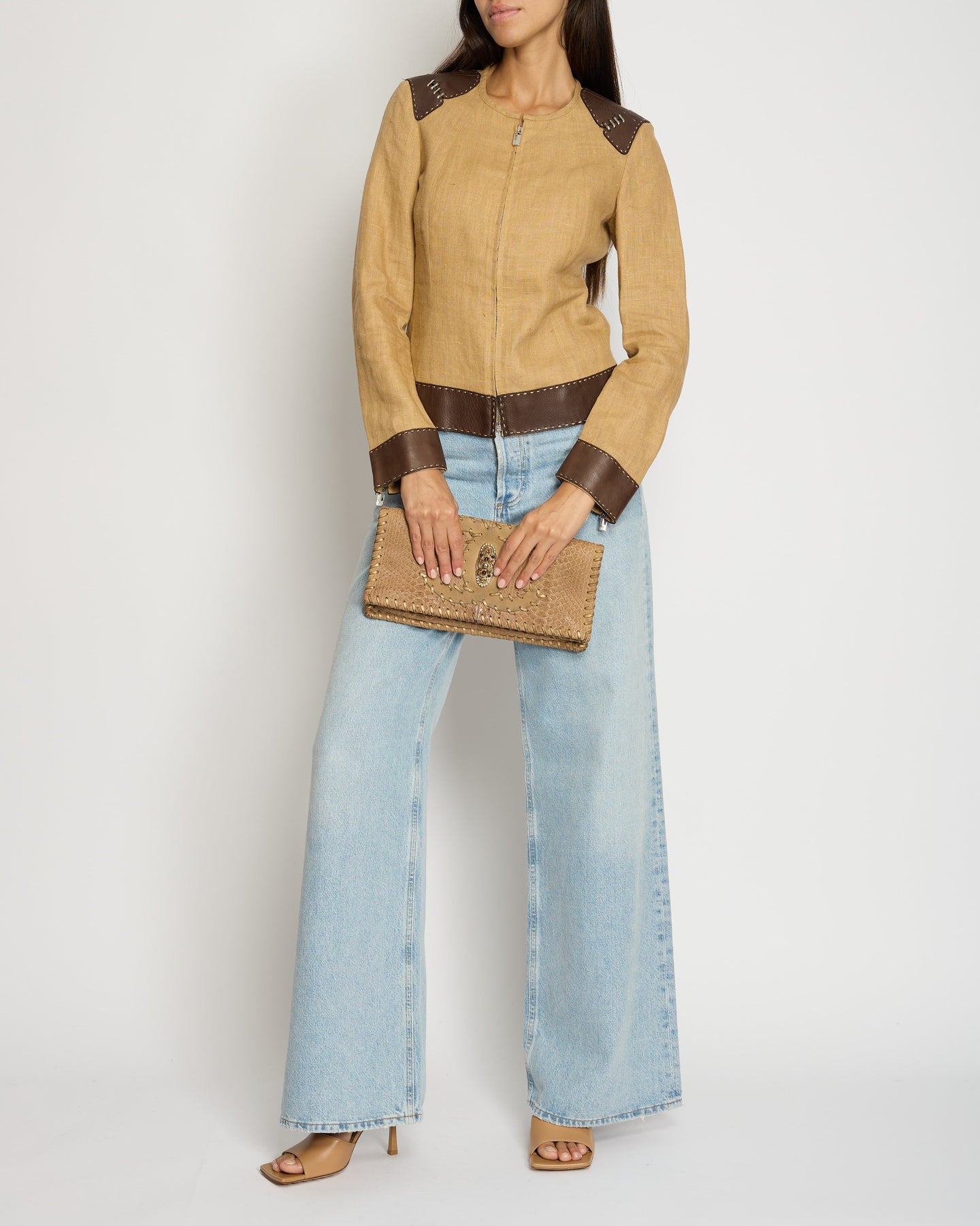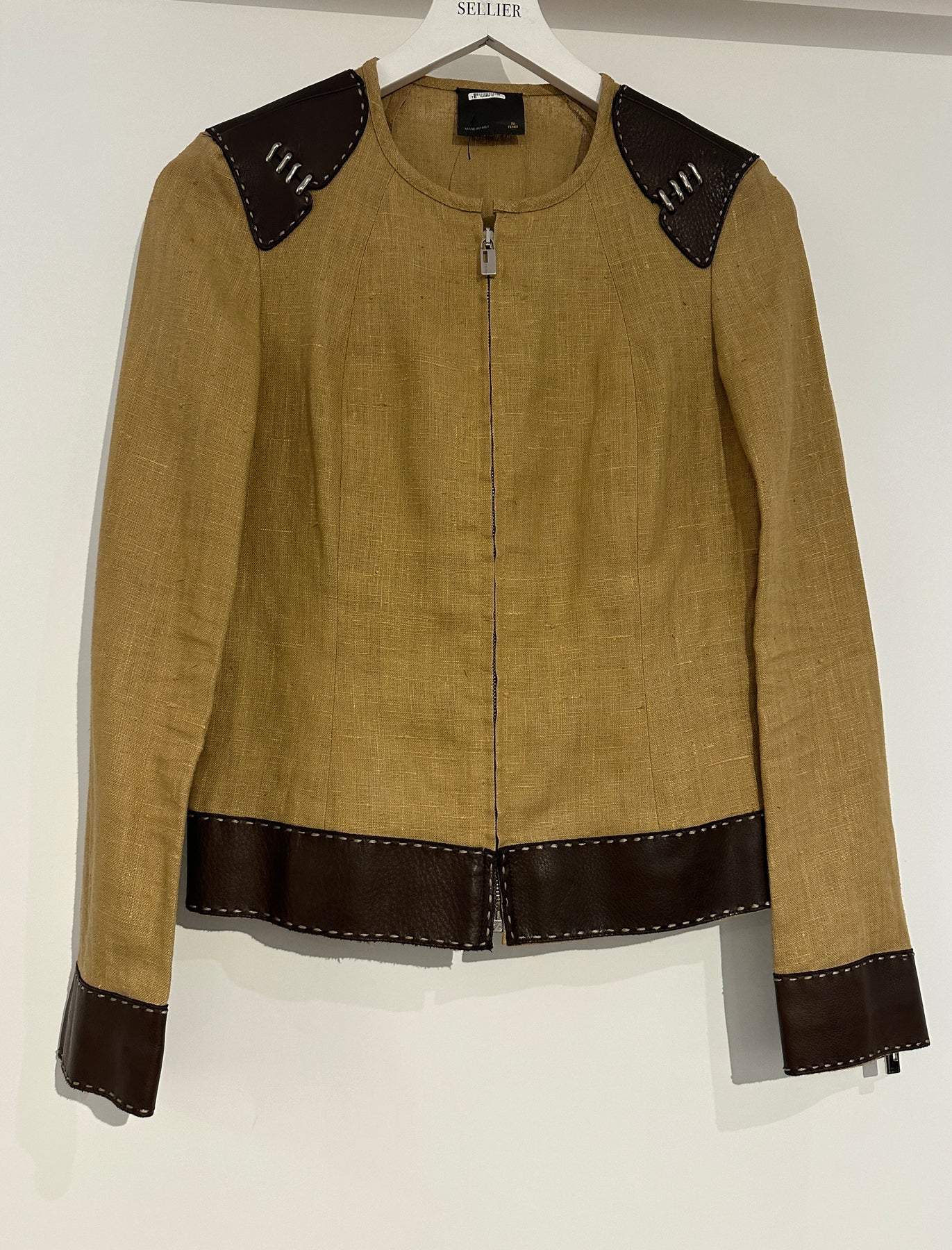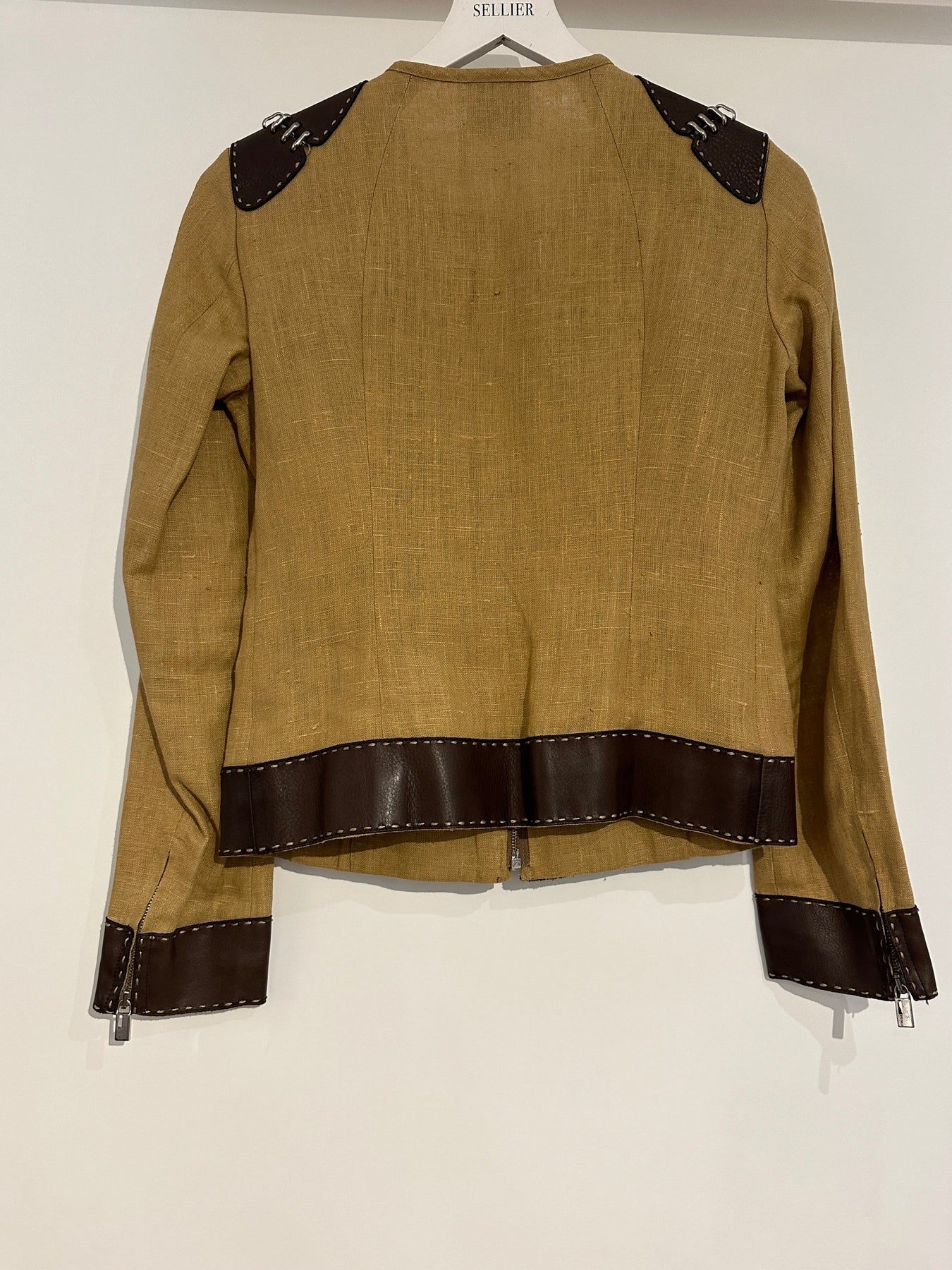 *VINTAGE* Fendi Brown Round Neck Jacket with Leather Trim Detail IT 42 (UK 10)