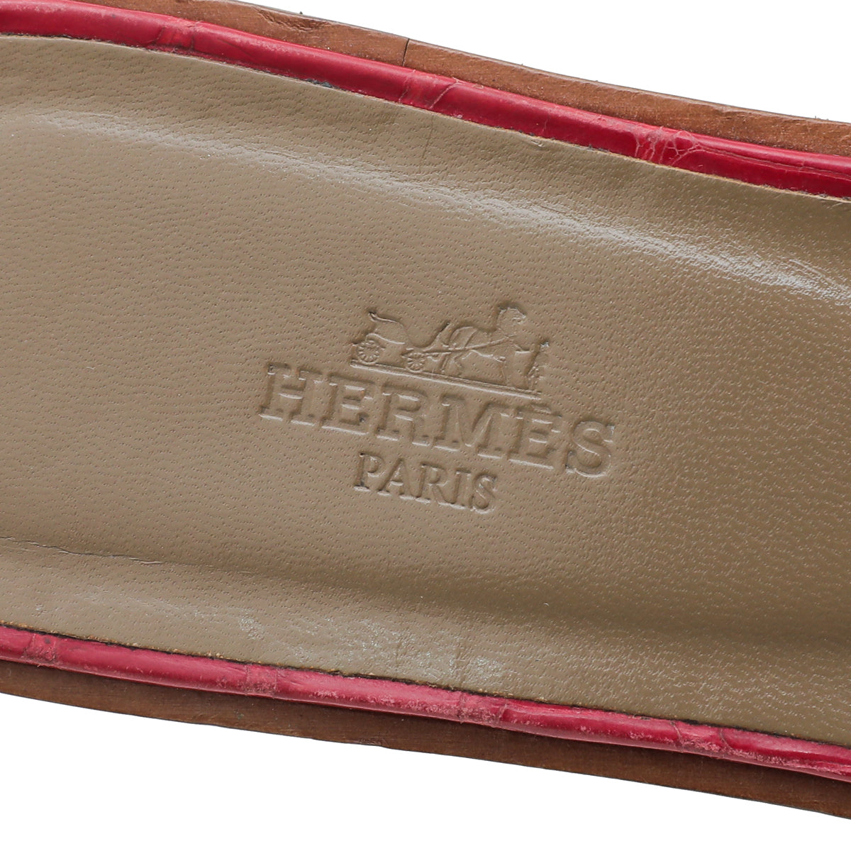 Top quality Hermes Rouge Crocodile Oran Patent Sandal 37