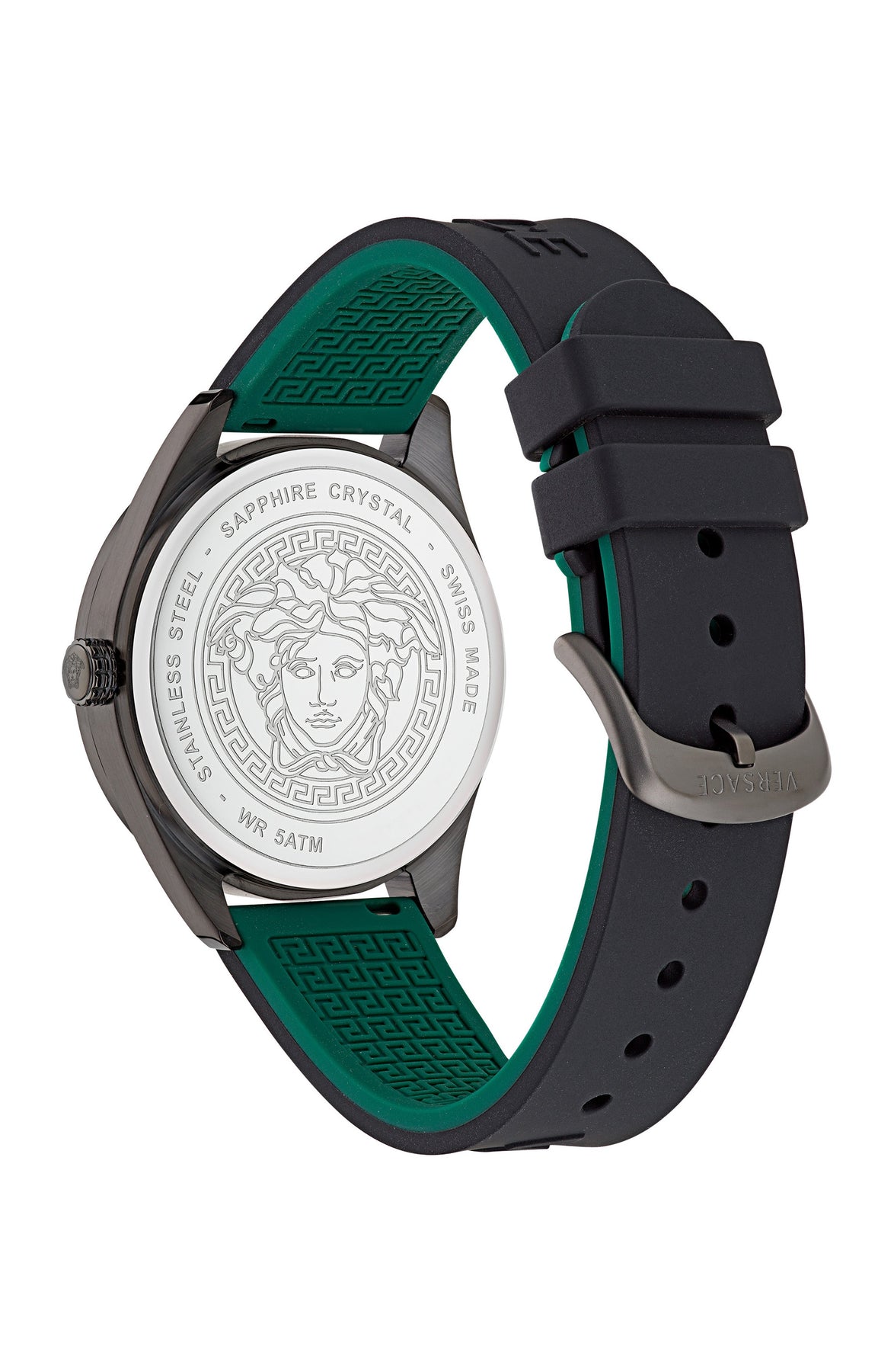 Collection Name: V-Vertical, Gender: Men's, Case Shape: Round, Case Material: Stainless Steel, Case Back: Closed, Case Width (mm): 42, Case Thickness (mm): , Case Crystal: Sapphire Crystal Scratch Resistant, Case Water Resistance: 50 m (165 feet), Dial Color: Green, Band Type: Strap, Band Material: Silicone, Band Color: Black, Band Length (in.): , Band Size Width (mm): , Band Clasp: Pin Buckle, Features: , Movement Type: Quartz, Movement Caliber: , Movement Crown: Pull and Push Crown, Country of Origin: Made in Switzerland,