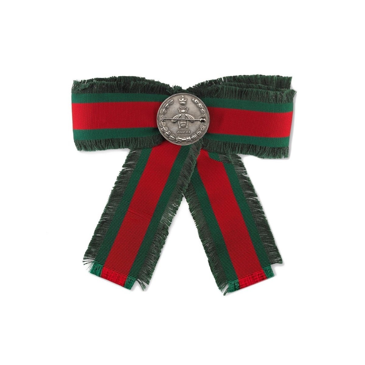Made with red and green grosgrain with a key detail of a crystal and bead rosette, made fabulous by the strings of pearls.