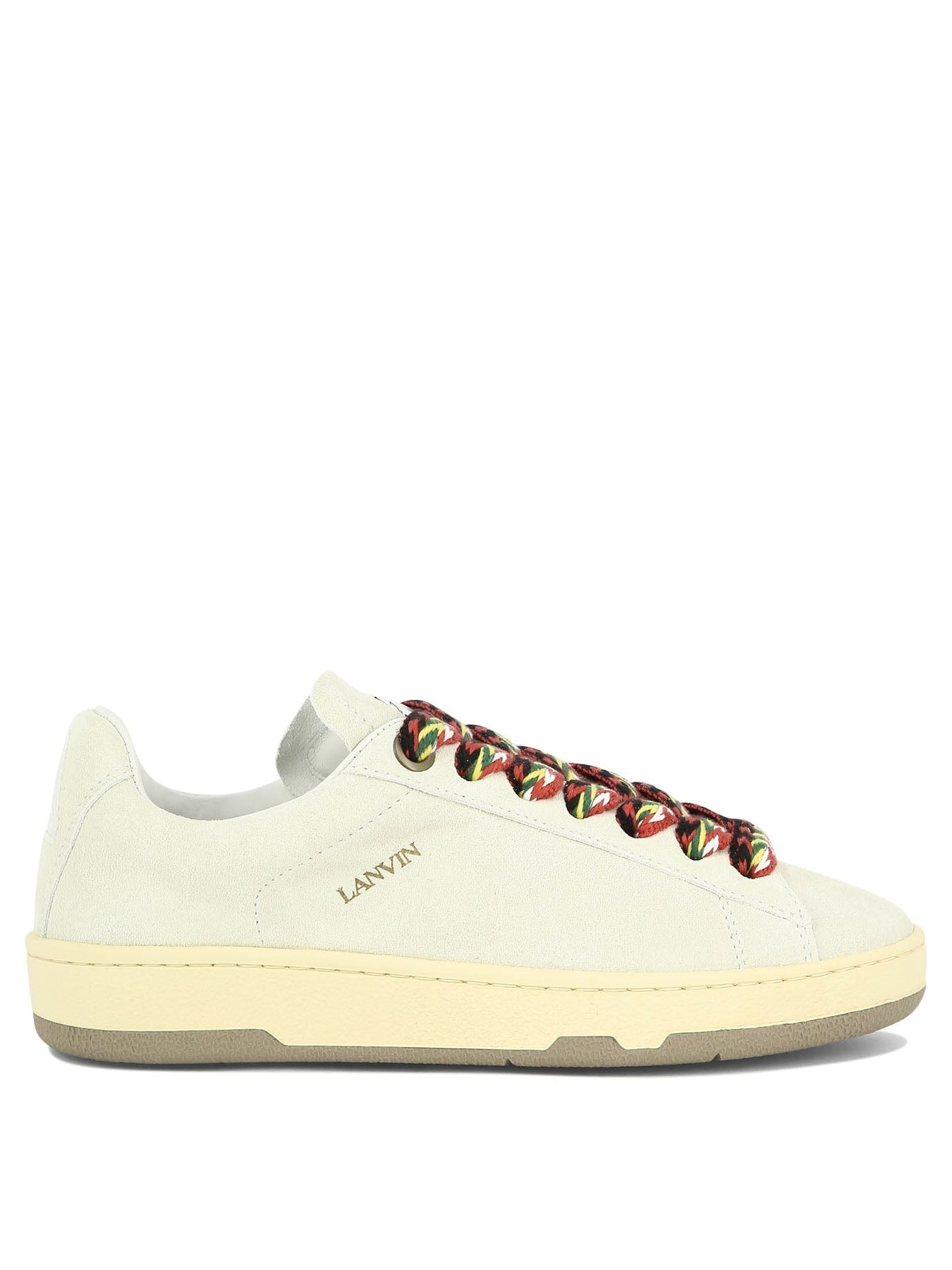 Step up your sneaker game with these stylish and comfortable lace-up sneakers. Featuring an exclusive rubber sole and a tongue with a Lanvin label and mother and child logo, these sneakers are perfect for adding a touch of luxury to any casual outfit.