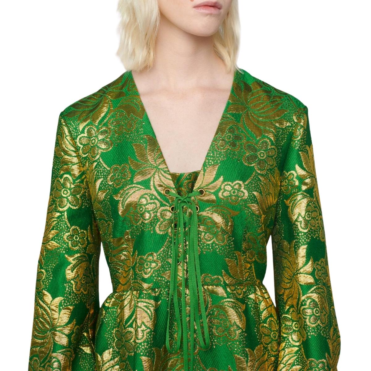 Green and gold wool lamé floral jacquard