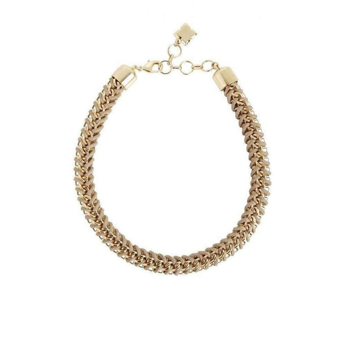 Bold accessories like this Woven Box-Chain Necklace lend fierce contrast to clean-lined tops and dresses.