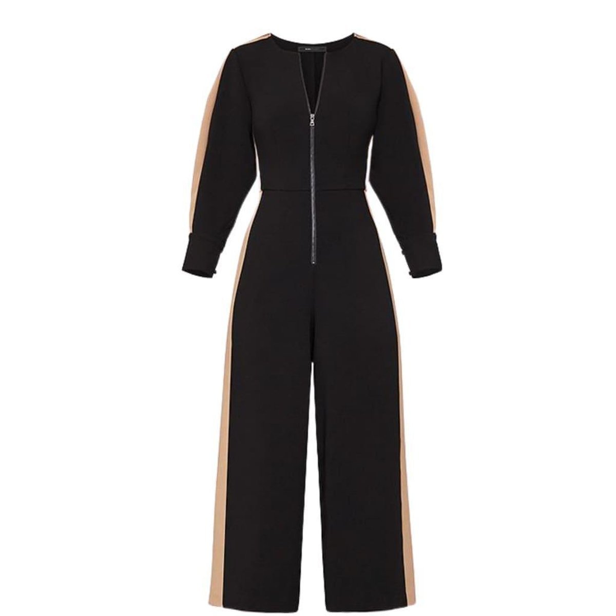 Inspired by vintage boiler suits and utilitarian style, this BCBGMAXAZRIA one-piece is your easiest outfit ever. Features long cuffed sleeves and athletic-inspired stripes at the sides.